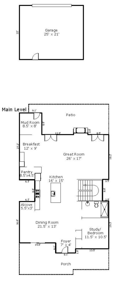 1,671 sqft. Foyer; Study; Dining Room; Kitchen; Pantry: Breakfast Room; Great Room with Fireplace; Three-Quarter Bath; Mud Room.