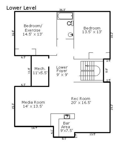 1,567 sqft. Rec Room/Media Room; Bar Area; Bedroom; Exercise Room; Full Bath; Storage/ Mechanical.