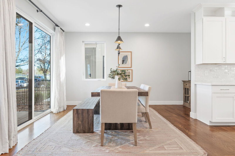 Warm and welcoming, this modern Cory-Merrill home features an expansive open floor plan flooded with natural light throughout. With high ceilings and hardwood floors that carry throughout the main floor, you’re welcomed into the dining room and spacious new kitchen, located at the heart of the home.
