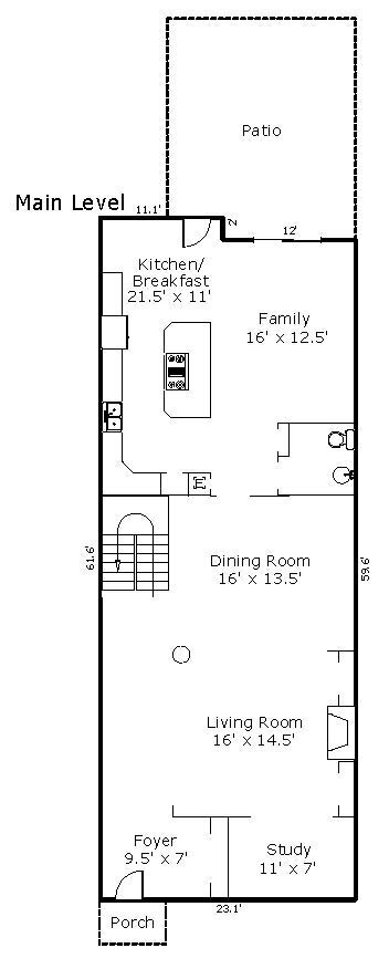 1,398 SqFt. Foyer; Study; Living Room with Fireplace; Dining Room; Kitchen; Breakfast Room; Family Room; Powder Room.