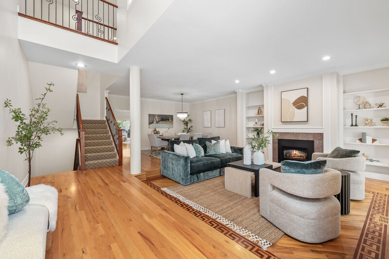 Upstairs, the primary suite is a sanctuary, complete with its own private balcony, sky-lit 5-piece bath, and two walk-in closets. Two additional bedrooms, 4-piece full bath, and upper laundry complete the second level.